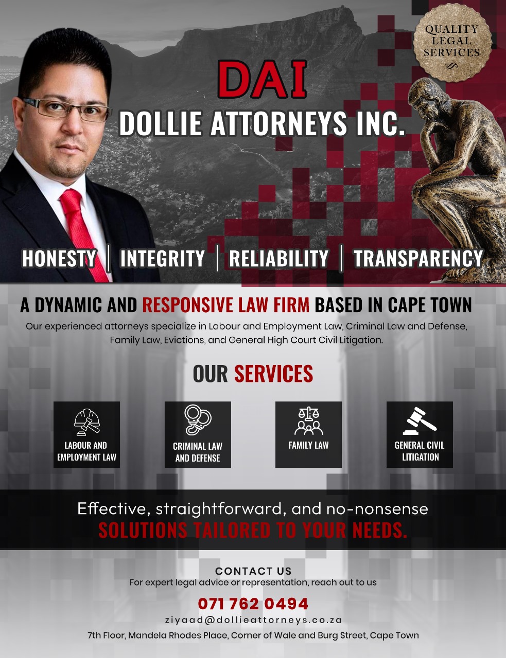 At Dollie Attorneys Inc. (DAI), we are a dynamic and responsive law firm based in Cape Town, South Africa.