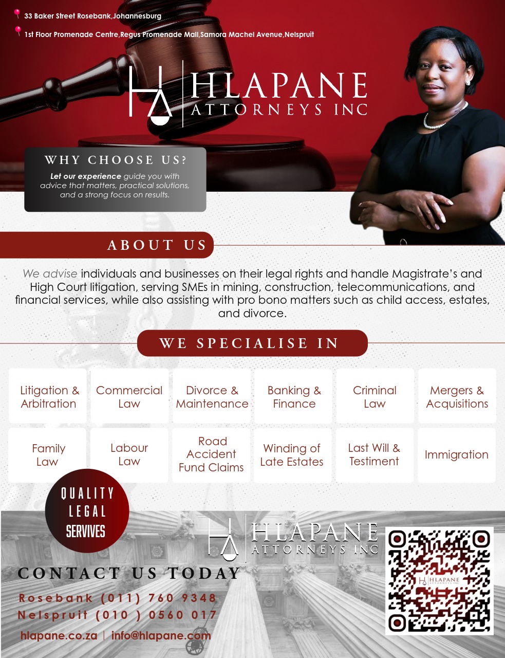 Hlapane Inc. is a legal consultancy that consistently exceeds customer expectations through remarkable solutions.