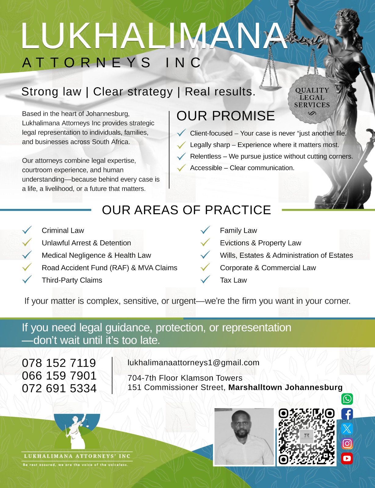 At Lukhalimana Attorneys Inc, we are a team of dedicated and experienced lawyers committed to providing exceptional legal services to our clients.